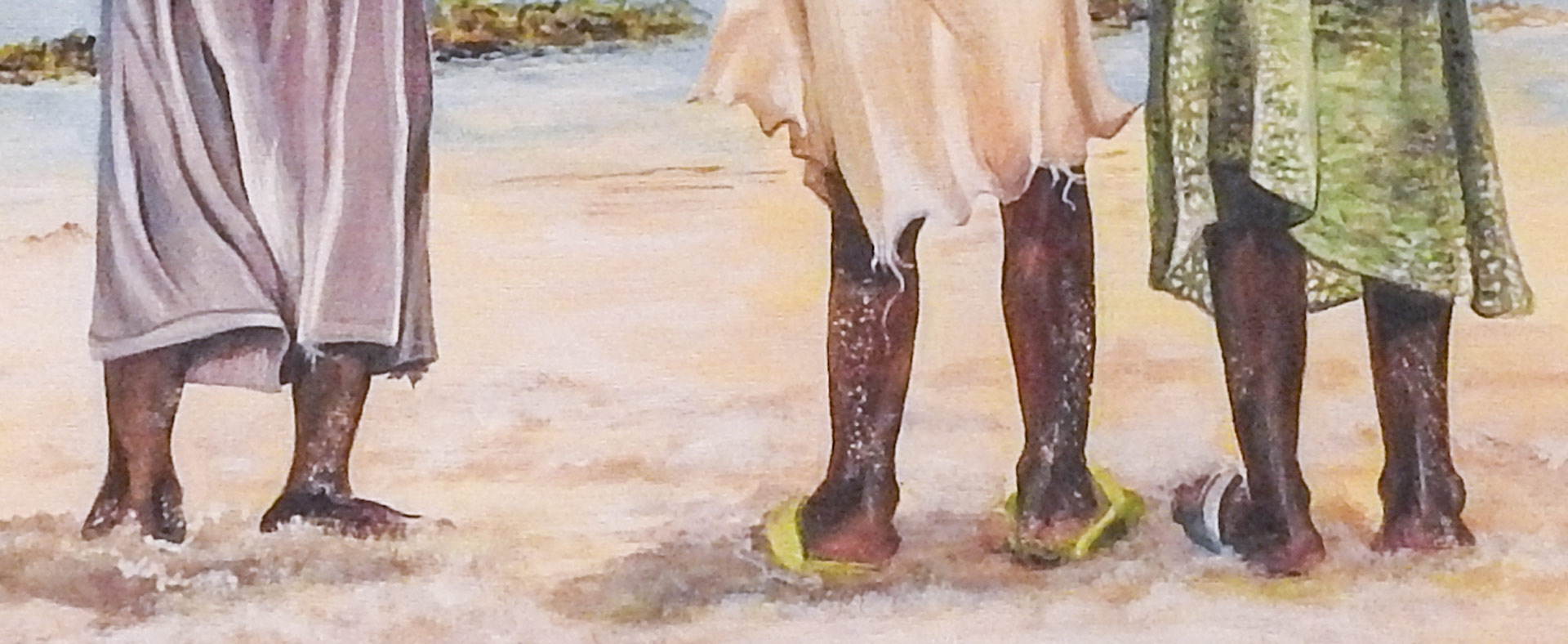 Dipingendolo, ho voluto rivivere quel momento di emozione nell’osservare tre bimbe che nella loro semplicità e serenità guardavano l’Oceano Indiano nella sua immensità come a chiedersi cosa ci fosse più in là, ma forse no, cosa potrebbe esserci di più bello del loro mondo? Probabilmente dicevano semplicemente: “Guarda! Guarda come è magnifico il nostro mondo.”